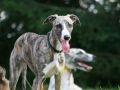 | Wer es genießt, einen Hund als Wegbegleiter zu haben, wird seine wahre Freude daran haben, die Whippets kennenzulernen. Durch Zufall kam ich vor einigen Jahren zu dieser für mich bis dato unbekannten Hunderasse. Die Tierärztin einer Kundin brachte ihren gerade aus Amerika importierten Rüden mit zu uns auf den Hof. Ich war sofort fasziniert von diesem wunderschönen, athletischen Tier. | |